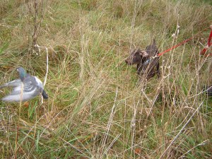 Can’t resist. This weekend we took all three dogs out for exercise and put the youngest two on birds so I could get some pictures.