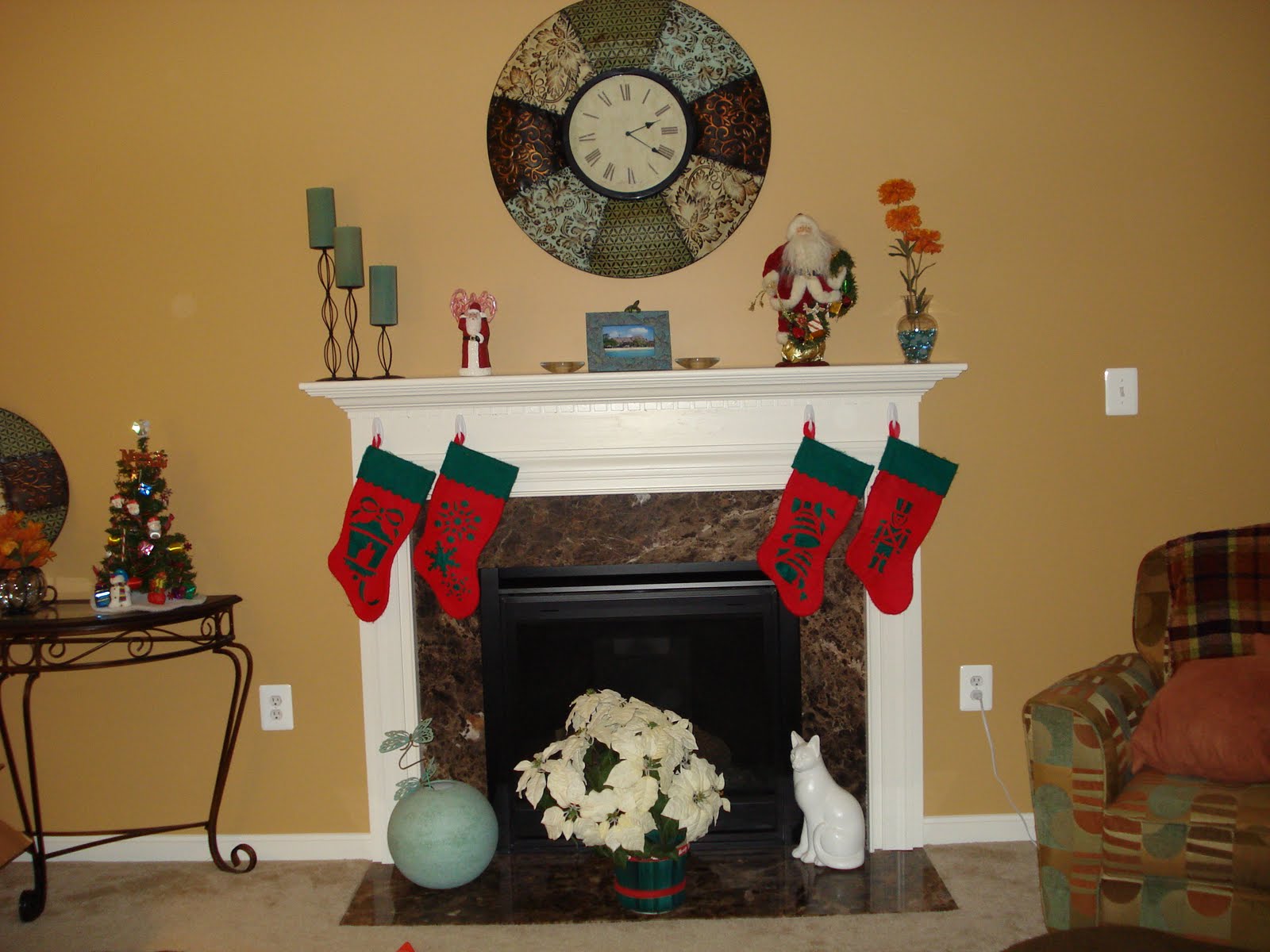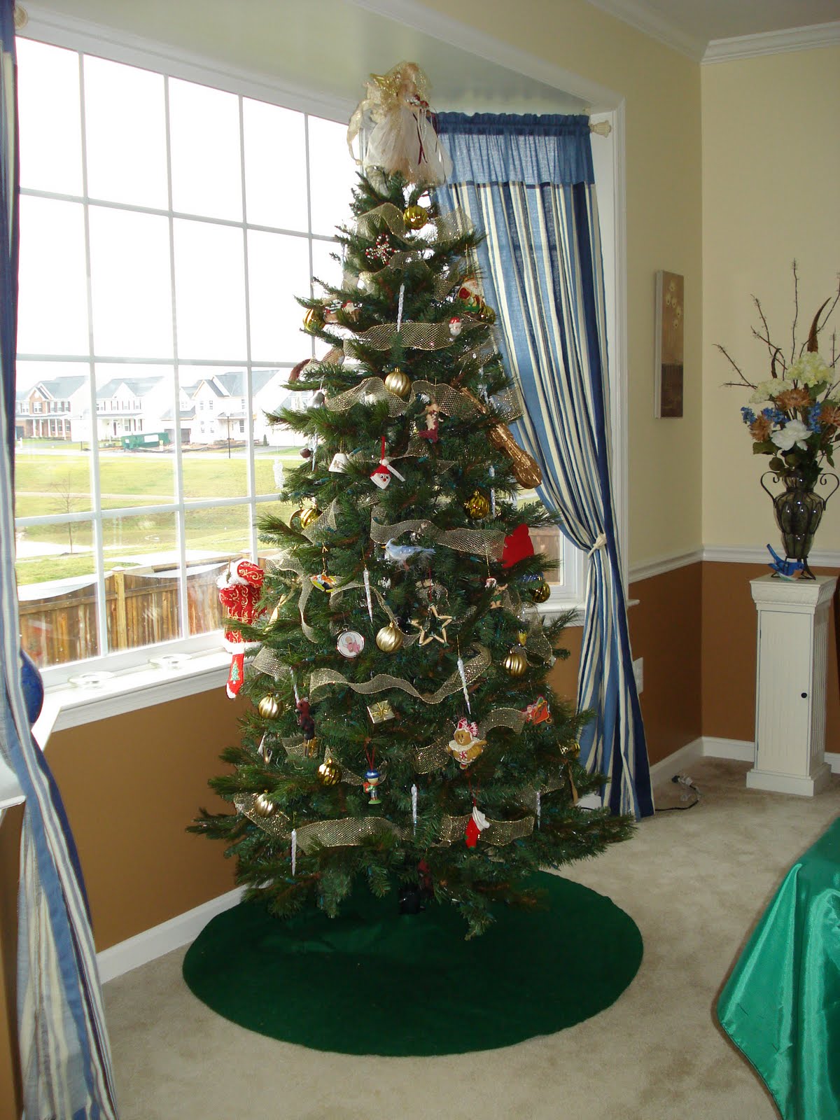 Every year I end up decorating one or two places and the rest of the house doesn’t look “special” so I spread things out this year. The tree went in our formal dining room. Not the norm, perhaps, but it worked for us because we could see it from other places in the house and this window is next to the road so others could see it too. It was also nice to have this view as we ate the big Christmas dinner.