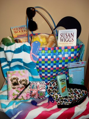 This year Brenda Novak is working to raise $500,000 for diabetes research with her annual online auction. To help her achieve her goal, my group blog, Petit Fours and Hot Tamales donated 33 separate items. Item #2138635 is the Bittersweet Obsessions Filled Beach Tote from Author Annie Rayburn (Hey, that’s ME!). It’s chock fill of goodies (see description below) and valued at over $70.