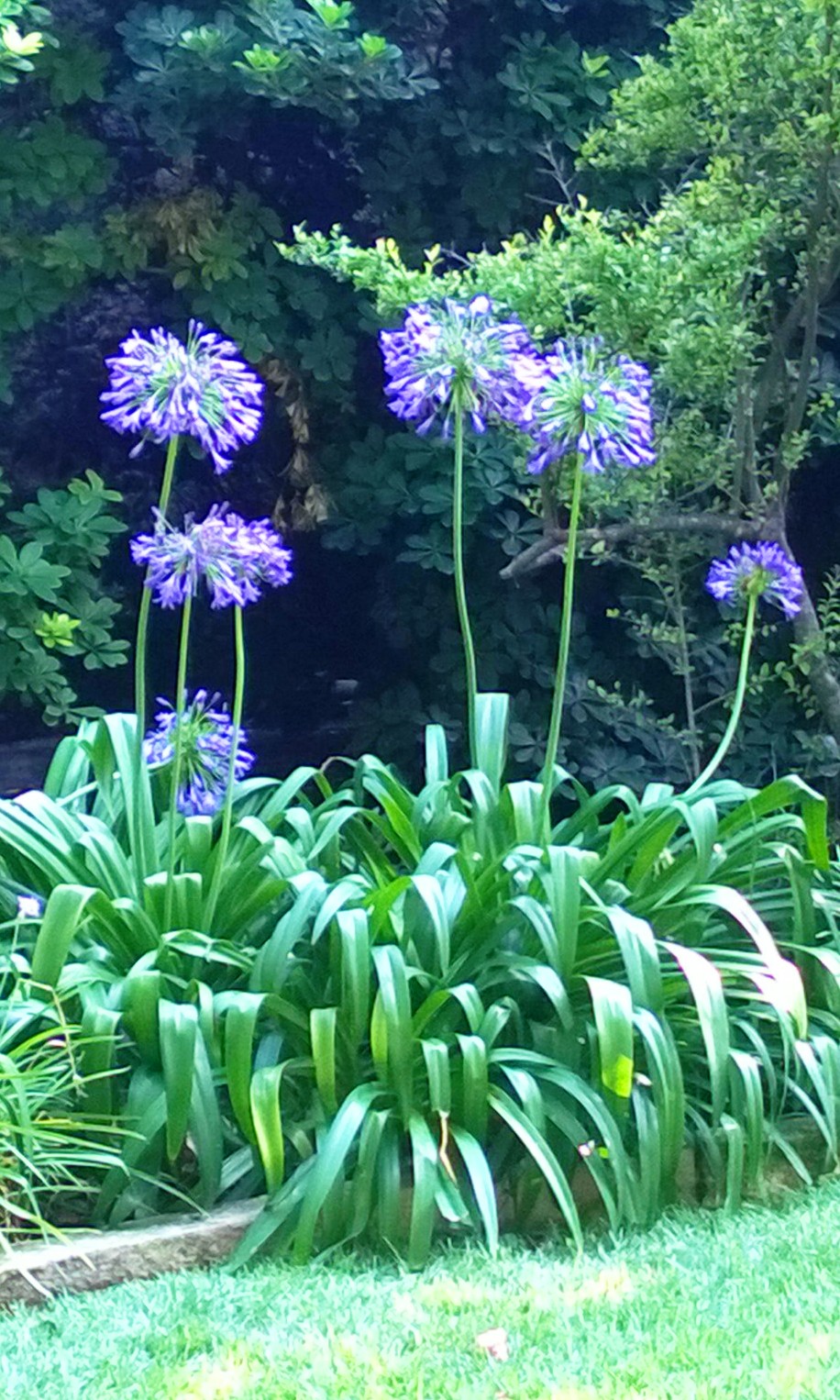 The beautiful fountain just beyond where Terry is standing. And to the right, flowers as tall as a person. Aren’t they beautiful?