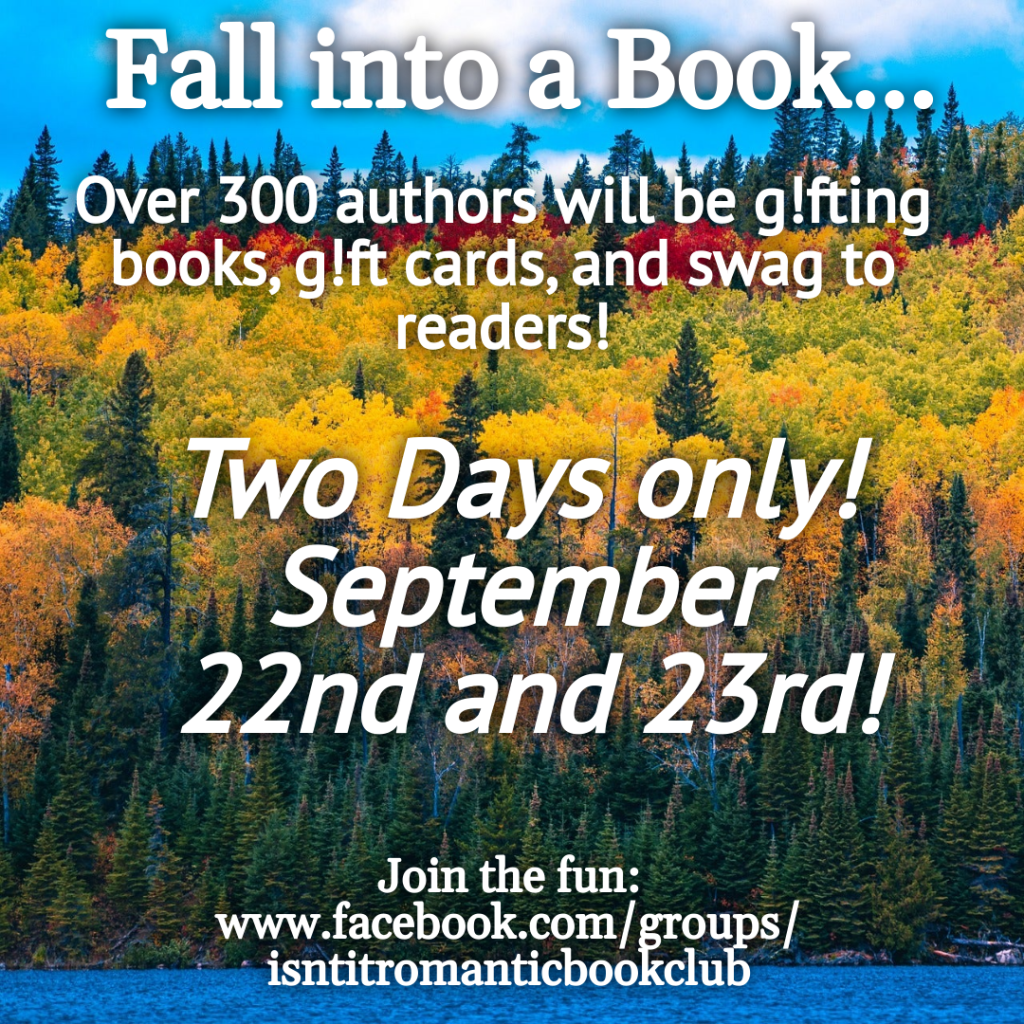 Click on the ad above to join the Facebook group here https://www.facebook.com/groups/isntitromanticbookclub so you’ll be ready for the giveaway days, then SAVE THE DATES on your schedule! I’ll see you there.